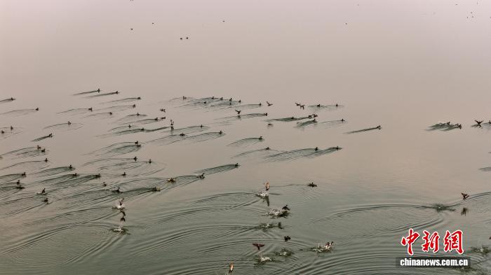 12月8日,不计其数的鸟女集合正在安徽省蚌埠市5河县沱湖天然珍爱区,它们或者翱翔,或者正在火里游弋。近些年去,该县不息增强干天死态建设任务,干天火量逐年改良,为家活泼动物供给了合适的存在境遇。(无人机相片)李背前 摄